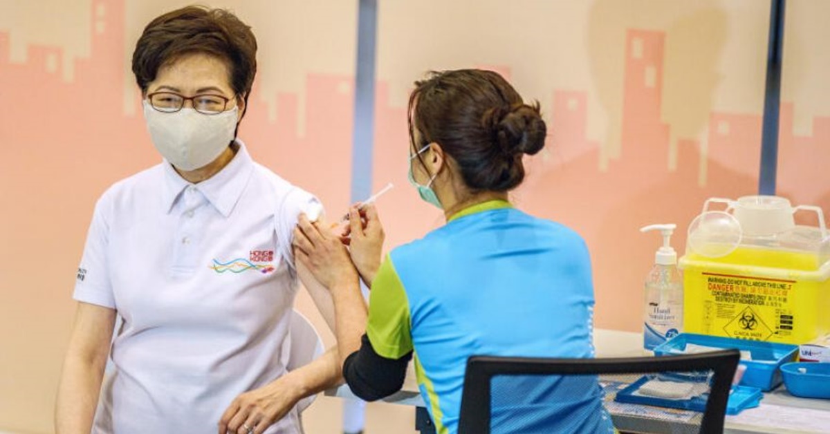 ฮ่องกง 22 ก.พ. – ผู้นำฮ่องกงและเจ้าหน้าที่ระดับสูงเข้ารับการฉีดวัคซีนป้องกันโรคติดเชื้อไวรัสโคโรนา 2019 หรือโควิด-19 ของซิโนแวก โดยมีการถ่ายทอดสดทางโทรทัศน์ เพื่อสร้างความเชื่อมั่นให้แก่ประชาชนก่อนจะเริ่มโครงการฉีดวัคซีนในสัปดาห์นี้