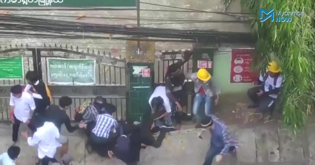 ด้านเมียนมานาว รายงานสั้น ๆ ว่า มีผู้ชุมนุมในนครย่างกุ้งถูกยิง ภาพข่าวในสื่อเห็นผู้ชุมนุมหลายคนถูกนำตัวออกจากที่ชุมนุม บางคนเลือดออกสาหัส ยังไม่ชัดเจนว่าบาดเจ็บกี่คน แต่มีรายงานว่ามีการยิงกระสุนจริง ผู้เห็นเหตุการณ์เล่าว่า ตำรวจเข้าประจำการตามจุดชุมนุมหลัก ๆ ตั้งแต่เช้า ในขณะที่ผู้ชุมนุมที่มีอุปกรณ์ป้องกันตัวเริ่มชุมนุม จากนั้นตำรวจก็ลงจากรถกรูเข้าไปสลายผู้ชุมนุมอย่างรวดเร็ว ขว้างระเบิดเสียงโดยไม่แจ้งเตือนล่วงหน้า ยิงแก๊สน้ำตา และยิงปืนขึ้นฟ้าด้วย ผู้ชุมนุมที่มีทั้งครู แพทย์ และนักศึกษา ต่างหลบเข้าไปตามอาคารใกล้เคียง เพื่อความปลอดภัย