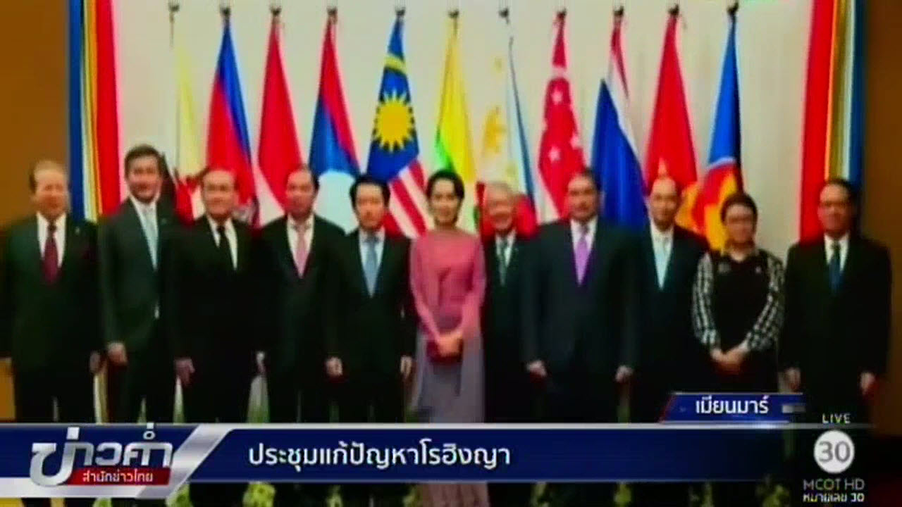 เมียนมาร์ 19 ธ.ค.-ปัญหาการละเมิดสิทธิมนุษยชนชาวมุสลิมโรฮิงญาในรัฐยะไข่ ของเมียนมาร์ ที่กำลังทวีความรุนแรงขึ้นทุกวันส่งผลให้ รัฐมนตรีต่างประเทศอาเซียน ต้องเข้าร่วมการประชุมฉุกเฉิน ที่นครย่างกุ้งเพื่อหารือแนวทางคลี่คลายปัญหาดังกล่าว โดยมีนางอองซาน ซูจี ที่ปรึกษาแห่งรัฐของเมียนมาร์นั่งหัวโต๊การประชุม