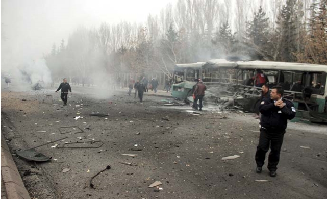 อิสตันบูล 17 ธ.ค.- กองทัพตุรกีแถลงว่า เหตุระเบิดรถที่มุ่งก่อเหตุกับรถโดยสารสาธารณะในเมืองกายเซรี ทางตอนกลางของประเทศ ในวันนี้ มีทหารเสียชีวิต 13 นาย บาดเจ็บ 48 นาย อาจมีพลเรือนบาดเจ็บและเสียชีวิตอีกจำนวนหนึ่ง