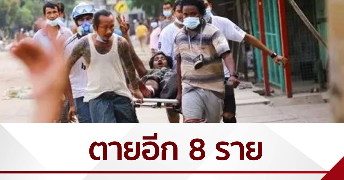 ย่างกุ้ง 19 มี.ค. – กองกำลังความมั่นคงเมียนมายิงผู้ประท้วงต่อต้านรัฐประหารเมื่อวันที่ 1 กุมภาพันธ์ เสียขีวิต อีก 8 รายในวันนี้