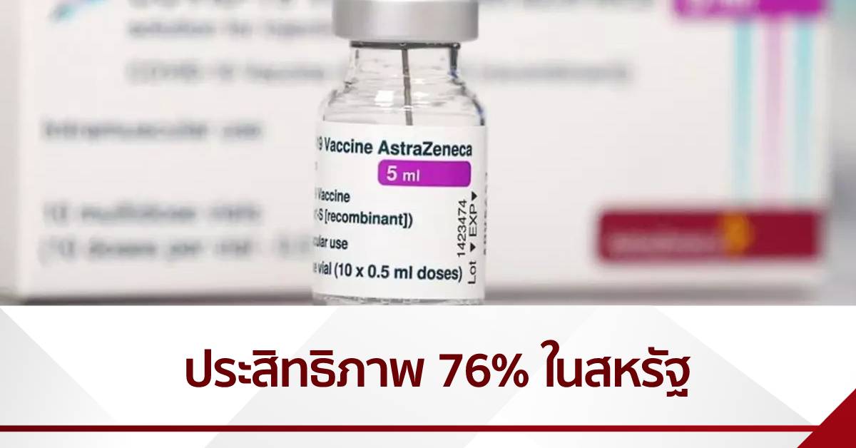 ลอนดอน 25 มี.ค. – แอสตราเซเนกาเผยว่า วัคซีนป้องกันโรคติดเชื้อไวรัสโคโรนา 2019 หรือโควิด-19 ที่บริษัทพัฒนาขึ้นมีประสิทธิภาพป้องกันโรคได้ร้อยละ 76 จากการวิเคราะห์ข้อมูลใหม่ของการทดลองครั้งใหญ่ในสหรัฐ และมีประสิทธิภาพลดลงเล็กน้อยจากร้อยละ 79 ที่รายงานในช่วงต้นสัปดาห์ ซึ่งตกเป็นที่วิพากษ์วิจารณ์ว่าใช้ข้อมูลเก่า