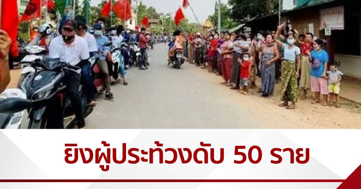 ย่างกุ้ง 27 มี.ค. – เว็บไซต์ข่าว เมียนมา นาว รายงานวันนี้ว่า มีผู้เสียชีวิตอย่างน้อย 50 ราย เมื่อกองกำลังความมั่นคงของเมียนมาเปิดฉากยิงเข้าใส่ผู้ประท้วงต่อต้านรัฐประหารในหลายพื้นที่ของเมียนมาในวันนี้