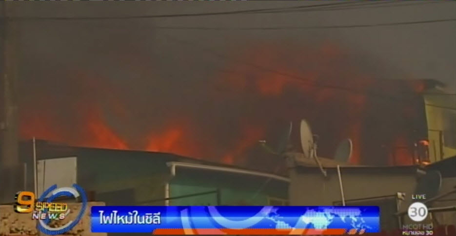 ชิลี 3 ม.ค. – ไฟป่าชิลีลุกลามเข้ามาในเขตชุมชนใกล้กับเมืองท่าวัลโปไรโซ เผาบ้านเรือนหลายสิบหลังพังเสียหาย ภาพจากโทรทัศน์ท้องถิ่นเผยให้เห็นชาวบ้านหยิบทรัพย์สินจากบ้านเรือนที่ถูกไฟไหม้ หลายคนร่ำไห้เมื่อเห็นภาพบ้านเรือนถูกไฟเผาเสียหาย ทางการต้องสั่งอพยพประชาชนประมาณ 200 คน ออกจากพื้นที่ เจ้าหน้าที่ดับเพลิง ทหาร และคนงาน ระดมกำลังช่วยกันดับไฟ แต่พบอุปสรรคจากกระแสลมแรง สภาพอากาศร้อนจัด และแห้งแล้ง. -สำนักข่าวไทย