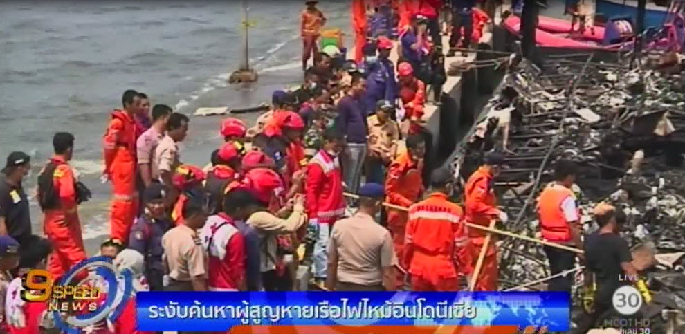 เจ้าหน้าที่กู้ภัยอินโดนีเซียระงับปฏิบัติการค้นหาผู้สูญหายอีก 17 คน จากเหตุเพลิงไหม้เรือโดยสารนักท่องเที่ยว ระหว่างเดินทางออกจากท่าเรือมัวรา อังเก ทางตอนเหนือของกรุงจาการ์ตา มุ่งหน้าไปยังเกาะเทาซันด์ไอแลนด์ หรือเกาะติดุง แหล่งท่องเที่ยวที่อยู่ห่างออกไป 50 กิโลเมตร เนื่องจากเป็นเวลากลางคืน โดยจะเริ่มค้นหาใหม่พรุ่งนี้เช้า เหตุเพลิงไหม้เรือโดยสารดังกล่าวมีผู้เสียชีวิตอย่างน้อย 23 คน บาดเจ็บ 17 คน ขณะที่หน่วยกู้ภัยช่วยชีวิตนักท่องเที่ยว 194 คนไว้ได้ หลายคนบอกว่า กระโดดลงทะเลเอาชีวิตรอด หลังควันจากไฟไหม้ปกคลุมทั่วลำเรือ ส่วนสาเหตุเกิดจากระบบไฟฟ้าบนเรือลัดวงจร.-สำนักข่าวไทย