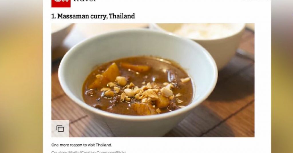 สหรัฐ 23 เม.ย. – สำนักข่าว CNN ของสหรัฐ ใน SECTION-CNN travel ยกให้ “แกงมัสมั่นไทย” ครองอันดับ 1 เมนูอาหารอร่อยที่สุดในโลก จากการจัดอันดับ 50 อาหารที่ดีที่สุดในโลก หรือ The world’s 50 best foods