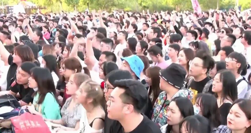จีน 2 พ.ค. – จีนจัดคอนเสิร์ตกลางแจ้งในเมืองอู่ฮั่น โดยมีแฟนเพลงนับพันคนเข้าชมอย่างสนุกสนาน หลายคนไม่สวมหน้ากากอนามัย
