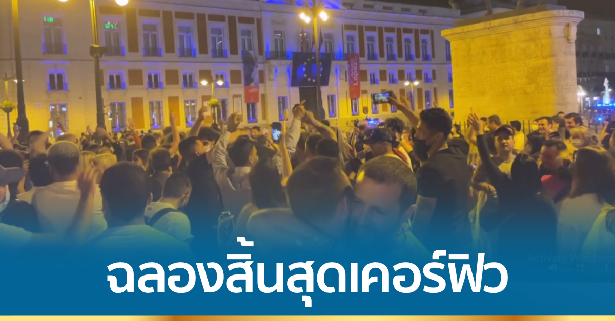 สเปน 9 พ.ค.- ชาวสเปนหลายร้อยคน ออกมาชุมนุมฉลอง การสิ้นสุดมาตรการเคอร์ฟิวห้ามออกจากบ้านหลัง 5 ทุ่ม ซึ่งบังคับใช้มาตั้งแต่เดือน ต.ค. ปีที่แล้ว