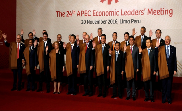 แถลงการณ์ปิดการประชุมสุดยอดเอเปก 2 วัน ที่กรุงลิมาของเปรูระบุว่า ผู้นำเอเปกขอย้ำพันธกิจที่จะทำให้ตลาดเปิดกว้างต่อไป จะต่อต้านการปกป้องทางการค้าในทุกรูปแบบ จะต่อต้านนักปกป้องทางการค้าและมาตรการบิดเบือนการค้าที่ทำให้การค้าซบเซาและชะลอความก้าวหน้ารวมทั้งการฟื้นตัวของเศรษฐกิจโลก และจะไม่แข่งขันกันลดค่าเงิน