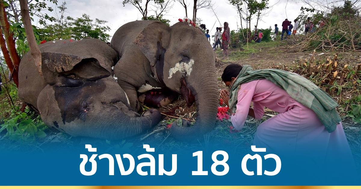 กูวาฮาติ 14 พ.ค.-อินเดียพบโขลงช้างเอเชียล้ม 18 ตัวในพื้นที่ป่าสงวนของรัฐอัสสัมทางตะวันออกของอินเดีย โดยคาดว่าอาจถูกฟ้าผ่ารุนแรง