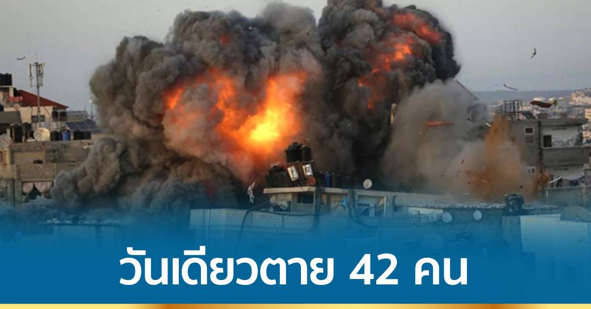 กาซาซิตี 17 พ.ค.- อิสราเอลใช้ปฏิบัติการโจมตีทางอากาศถล่มฉนวนกาซาเมื่อวานนี้ตามเวลาท้องถิ่น ทำให้มีชาวปาเลสไตน์เสียชีวิตวันเดียวมากถึง 42 คน ซึ่งเป็นยอดผู้เสียชีวิตรายวันสูงสุดในรอบเกือบสัปดาห์ที่เกิดเหตุปะทะรุนแรง