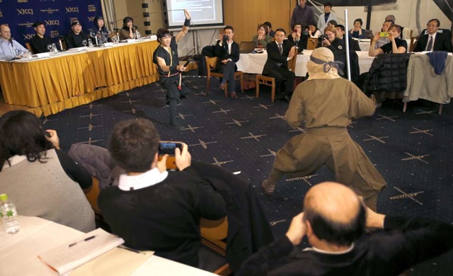 รายงานระบุว่า เจ้าหน้าที่ที่สโมสรผู้สื่อข่าวต่างประเทศประจำญี่ปุ่นจัดแสดงศิลปะการป้องกันตัวแบบนินจาและแนะนำหนังสือท่องเที่ยวตามรอยนินจาฉบับภาษาอังกฤษด้วย.- สำนักข่าวไทย