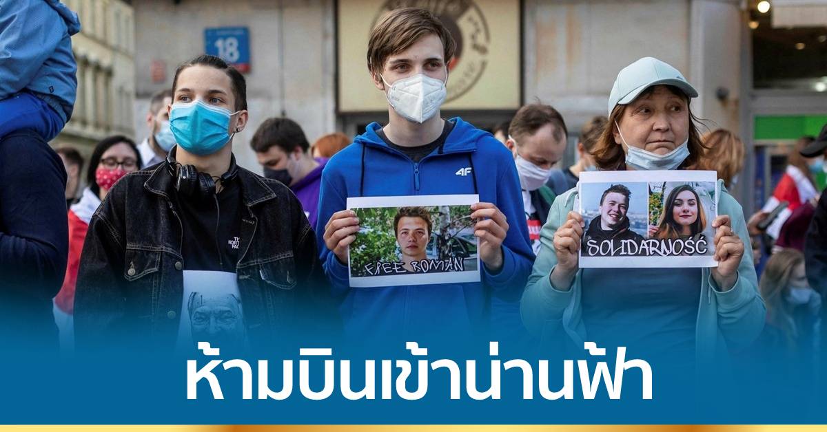 บรัสเซลส์ 25 พ.ค.- สหภาพยุโรปหรืออียู (EU) ตัดสินใจห้ามสายการบินของเบลารุสเข้าน่านฟ้าสมาชิกอียู เพื่อตอบโต้ที่เบลารุสสั่งเครื่องบินไรอันแอร์ลงจอดเพื่อควบคุมตัวผู้สื่อข่าวที่วิพากษ์วิจารณ์รัฐบาล