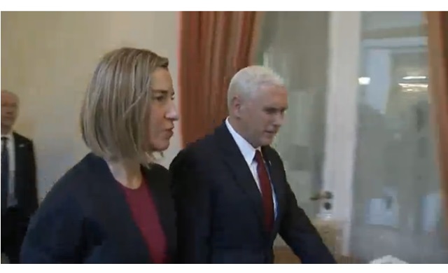 นายเพนซ์พบหารือกับนางเฟรเดอริกา โมเกอรินี หัวหน้างานด้านนโยบายต่างประเทศของอียู ก่อนที่จะพบกับผู้นำของคณะมนตรีสหภาพยุโรป คณะกรรมาธิการยุโรป และองค์การสนธิสัญญาห้องกันแอตแลนติกเหนือ หรือ นาโต โดยเขากล่าวกับนางโมเกอรินีว่า เขายินดีอย่างยิ่งที่ได้มีโอกาสพบกับเธอและได้หารือแนวทางในการประสานความสัมพันธ์ระหว่างสหรัฐและอียูให้แนบแน่นมากยิ่งขึ้น ในขณะที่นางโมเกอรินี กล่าวต่อนายเพนซ์ว่า ประเทศในยุโรปและสหรัฐมีประเด็นที่จะต้องทำงานร่วมกันอีกมากและได้เริ่มมีการหารือกันไปแล้ว ก่อนหน้านี้ประธานาธิบดีทรัมป์ได้กล่าวสนับสนุนการที่อังกฤษตัดสินใจจะถอนตัวออกจากการเป็นสมาชิกอียูและกล่าวว่า ประเทศสมาชิกอียูอื่น ๆ อาจจะดำเนินรอยตามอังกฤษ ซึ่งสร้างความประหลาดใจให้กับบรรดาผู้นำอียู รองประธานาธิบดีเพนซ์ เดินทางเยือนเยอรมนีในช่วงสุดสัปดาห์ที่ผ่านมา และพยายามให้คำมั่นกับประเทศในยุโรปว่า รัฐบาลสหรัฐยังคงยึดมั่นในข้อตกลงด้านกลาโหมของนาโต แต่ยังมีหลายคนไม่มั่นใจ.-สำนักข่าวไทย