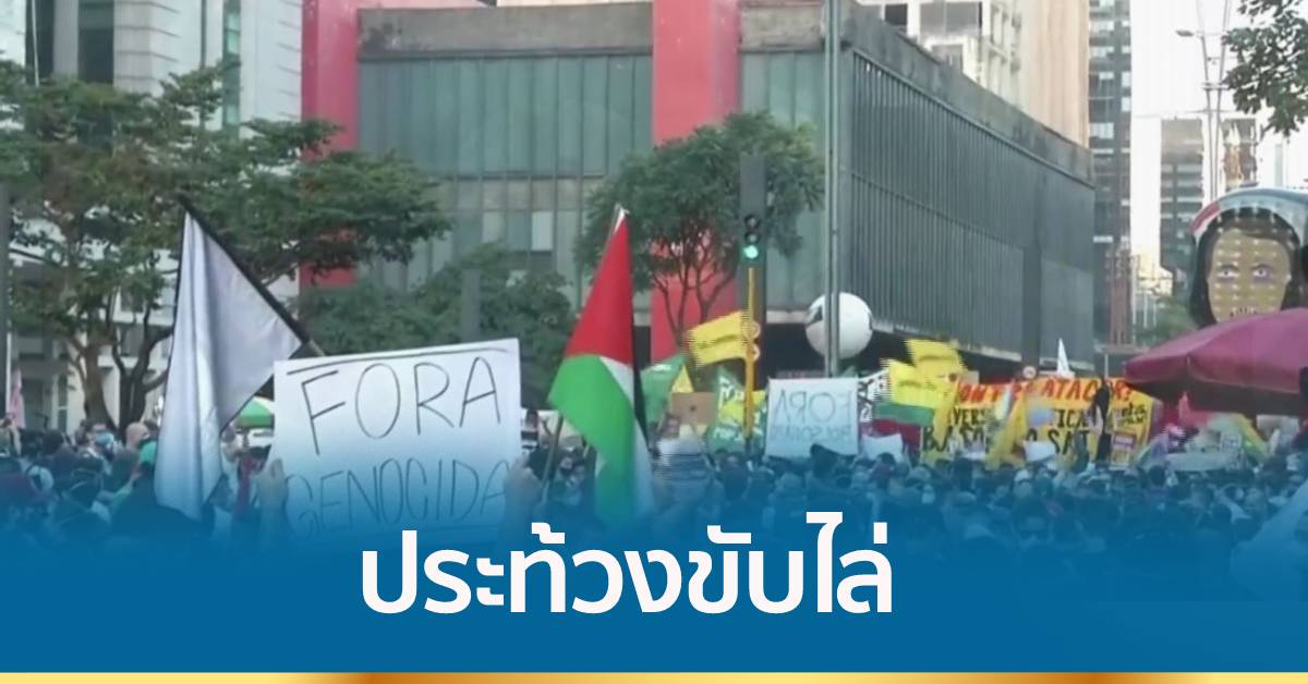 บราซิล 30 พ.ค. – ชาวบราซิลในเมืองเซาเปาโล และอีกหลายเมืองทั่วประเทศ ชุมนุมประท้วงประธานาธิบดีฌาอีร์ บอลโซนาโร โดยกล่าวหาว่าเขามีส่วนทำโควิดระบาดหนักที่สุด จนติดอันดับต้นๆ ของโลก