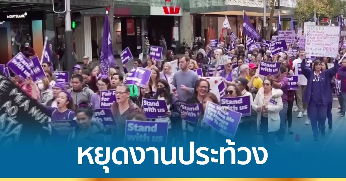 นิวซีแลนด์ 9 มิ.ย.-พยาบาลราว 30,000 คน ในนิวซีแลนด์ นัดหยุดงาน 8 ชั่วโมง เดินขบวนประท้วงหลังถูกปฏิเสธการขอขึ้นเงินเดือน ทำให้การผ่าตัดที่ไม่เร่งด่วนและคลินิกผู้ป่วยนอกถูกยกเลิกทั้งหมด