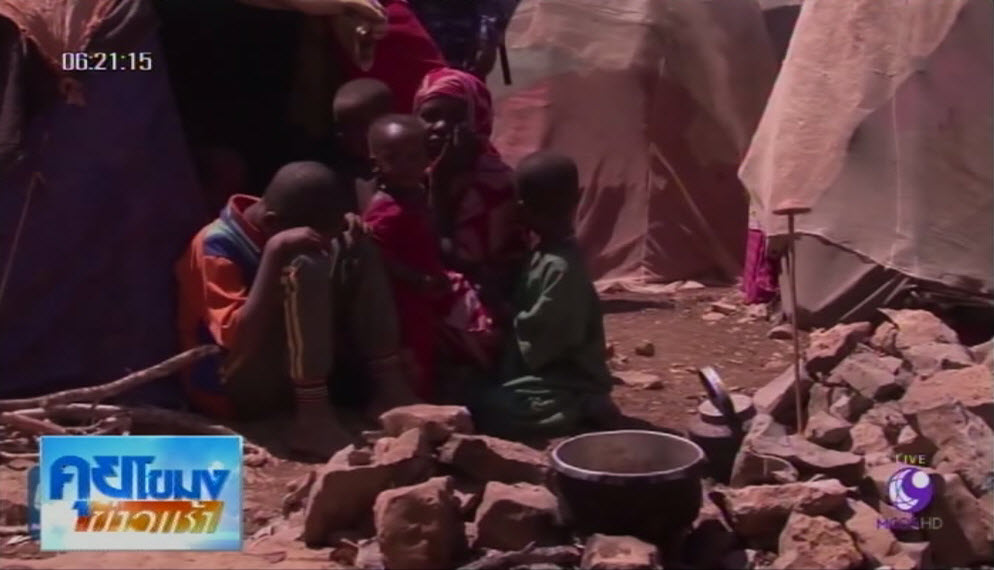 สถานการณ์ภัยแล้งในโซมาเลียขณะนี้ ส่วนหนึ่งเป็นผลจากปรากฏการณ์เอลนีโญ ส่งผลกระทบต่อฝั่งตะวันออกและฝั่งใต้ของทวีปแอฟริกา ภาวะขาดแคลนอาหารและน้ำยังทำให้สัตว์เลี้ยงจำนวนมากล้มตาย เหลือเพียงซากเกลื่อนตามพื้นที่ต่างๆ ภาวะอดอยากในโซมาเลียเคยคร่าชีวิตประชาชนถึง 260,000 คน ระหว่างปี 2553-2555 และภาวะอดอยากเมื่อปี 2525 ก็คร่าชีวิตชาวบ้านไปราว 220,000 คน