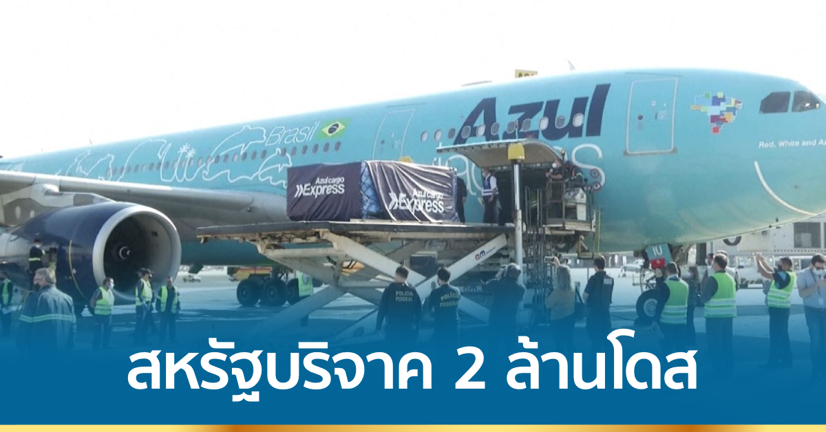 เครื่องบินขนส่งพร้อมวัคซีนต้านโควิด-19 ของ “จอห์นสัน แอนด์ จอห์นสัน” จำนวน 2 ล้านโดส ที่สหรัฐ บริจาคให้รัฐบาลบราซิล เดินทางไปถึงนครเซาเปาโลเมื่อวานนี้ (25 มิ.ย.)