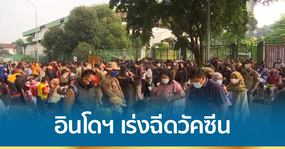 อินโดนีเซียเร่งฉีดวัคซีนป้องกันโควิด-19 ให้ประชาชนเพื่อต่อสู้กับการแพร่ระบาดที่กำลังวิกฤติอย่างหนักอยู่ในเวลานี้ ที่สนามกีฬาหลักในเมืองเบกาซีชานกรุงจาการ์ตา ซึ่งใช้เป็นศูนย์ฉีดวัคซีนขนาดใหญ่วันนี้มีประชาชนหลายพันคนมารอรับการฉีดวัคซีน ทางการท้องถิ่นเมืองเบกาซี ตั้งเป้าจะฉีดวัคซีนให้ได้วันละ 25,000 คน