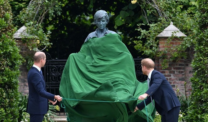เจ้าชายวิลเลียมและเจ้าชายแฮรี ปรากฎพระองค์ในท่าทีที่ผ่อนคลายและร่วมกันเปิดผ้าคลุมรูปปั้นบรอนซ์ ที่จัดสร้างขึ้นเพื่อเป็นเกียรติแก่เจ้าหญิงไดอานา ซึ่งตั้งอยู่ที่สวนซันเคนการ์เดน ภายในพระราชวังเคนซิงตัน ในกรุงลอนดอน ซึ่งเคยเป็นที่ประทับของเจ้าหญิงไดอานา รูปปั้นบรอนซ์นี้ ปั้นเป็นเจ้าหญิงไดอานา ซึ่งสิ้นพระชนม์จากอุบัติเหตุทางรถยนต์ในกรุงปารีสเมื่อปี 1997 รายล้อมด้วยรูปปั้นเด็กหญิงและชาย 3 คน รูปปั้นนี้ออกแบบโดยประติมากรนามว่า เอียน แรงค์-บรอดลีย์ ซึ่งได้รับมอบหมายงานนี้จากเจ้าชายทั้งสองเมื่อปี 2017 เพื่ออุทิศให้แก่พระมารดา ภายใต้รูปปั้นมีข้อความเป็นชื่อของเจ้าหญิงไดอานาและวันที่เปิดรูปปั้นนี้ ภาพข่าวที่เผยแพร่ออกมาแสดงให้เห็นเจ้าชายวิลเลียมและเจ้าชายแฮรีทรงพูดคุยกันในระหว่างที่เดินมาเข้าร่วมพิธีโดยไม่มีสัญญาณให้เห็นถึงความบาดหมางระหว่างกัน การเสด็จออกงานพร้อมกันครั้งนี้ถือเป็นการปรากฏพระองค์พร้อมกันครั้งแรกนับตั้งแต่พิธีพระศพเจ้าชายฟิลิป ดยุคแห่งเอดินบะระ พระอัยกา เมื่อเดือนเมษายน เจ้าชายแฮร์รีเสด็จโดยลำพังจากสหรัฐมายังอังกฤษเพื่อร่วมงานพิเศษนี้ ก่อนหน้านี้ เจ้าชายแฮร์รี ทรงเผยถึงความสัมพันธ์ที่ไม่ราบรื่นระหว่างพระองค์และเจ้าชายวิลเลียม นับตั้งแต่พระองค์ทรงยุติการปฏิบัติพระกรณียกิจในฐานะสมาชิกราชวงศ์อังกฤษเมื่อปีที่แล้ว.-สำนักข่าวไทย