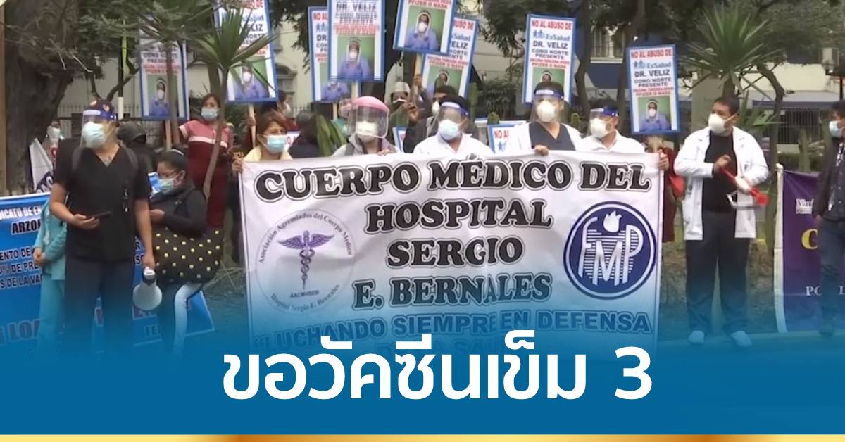 เปรู 14 ก.ค.-กลุ่มแพทย์ในเปรู เรียกร้องขอให้ฉีดวัคซีนเข็มสาม กระตุ้นภูมิคุมกัน หลังแพทย์ 14 คนต้องเสียชีวิตจากการติดโควิด-19 หลังรับวัคซีนครบ 2 โดสแล้ว