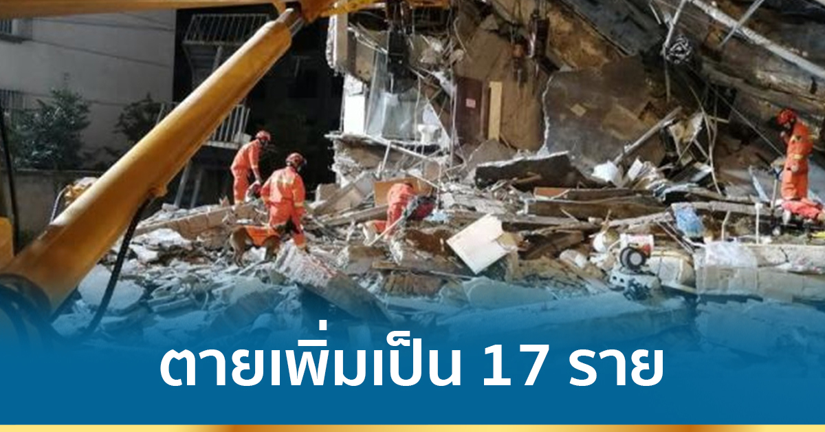 ปักกิ่ง 14 ก.ค. – เหตุอาคารโรงแรมพังถล่มเป็นบางส่วนในเมืองซูโจวของจีนเมื่อวานนี้ทำให้มีผู้เสียชีวิตเพิ่มเป็น 17 ราย และมีผู้รอดชีวิตจากเหตุดังกล่าวเพียง 6 คน