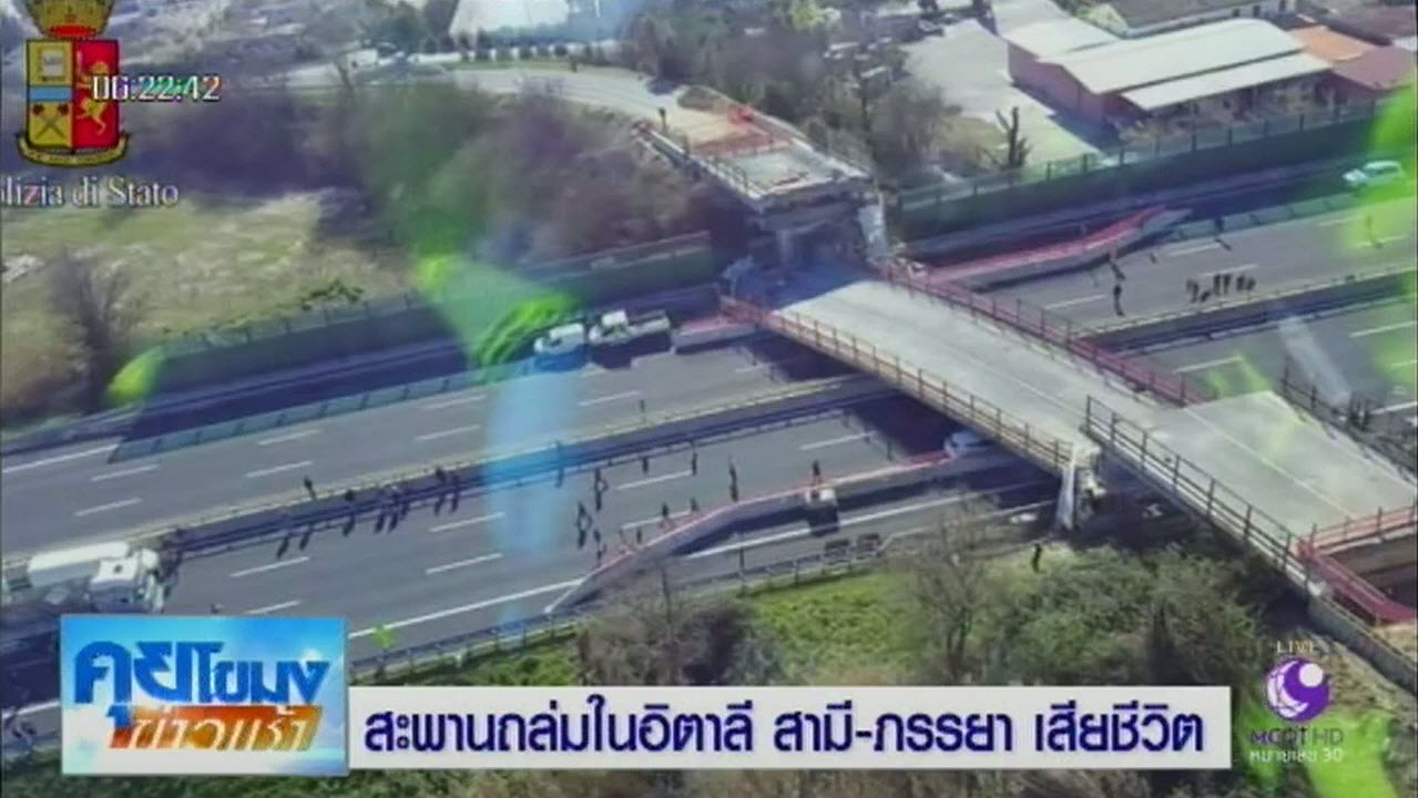 อิตาลี 10 มี.ค.-คู่สามีภรรยาชาวอิตาเลียนเสียชีวิต ขณะเกิดเหตุสะพานบนถนนมอเตอร์เวย์แห่งหนึ่งพังถล่มลงทับรถยนต์ของทั้งคู่ที่แล่นผ่านใต้สะพาน เป็นเหตุการณ์ที่เกิดซ้ำสองในรอบ 4 เดือน