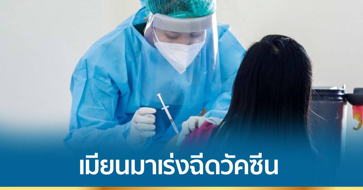 หนังสือพิมพ์โกลบอลนิวไลต์ออฟเมียนมาของทางการเมียนมารายงานวันนี้ว่า กระทรวงสาธารณสุขเมียนมาตั้งเป้าฉีดวัคซีนป้องกันโรคโควิดให้แก่ชาวเมียนมาครึ่งหนึ่งจากประชากรทั้งหมดภายในปีนี้ ขณะนี้เมียนมาฉีดวัคซีนให้แก่ประชาชนไปได้เพียง 1.6 ล้านคน แต่ทางการกำลังสั่งซื้อวัคซีนจากต่างประเทศอย่างต่อเนื่อง เพื่อสร้างความมั่นใจว่าชาวเมียนมาทุกคนจะได้รับการฉีดวัคซีนครบถ้วน ทั้งยังระบุเพิ่มเติมว่า เมียนมาจะได้รับวัคซีนของจีนราว 750,000 โดสในวันพฤหัสบดี และมีกำหนดได้รับวัคซีนเพิ่มอีกใน 2 วันหลังจากนั้น ขณะที่สถานีโทรทัศน์และวิทยุของทางการเมียนมา หรือเอ็มอาร์ทีวี รายงานอ้างกระทรวงสาธารณสุขเมียนมาว่า เมื่อวานนี้พบผู้เสียชีวิตจากโรคโควิด-19 เพิ่มขึ้น 281 ราย ทำสถิติสูงสุดเป็นประวัติการณ์ และพบผู้ป่วยติดเชื้อรายใหม่ 5,189 คน ทำให้มียอดผู้ป่วยติดเชื้อสะสมกว่า 234,700 คน และผู้เสียชีวิตกว่า 5,200 คน