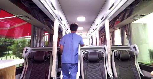 เกาหลีใต้ 4 ส.ค. – บุคลากรทางการแพทย์เกาหลีใต้ที่ทำงานอย่างหนักขณะประจำจุดตรวจหาเชื้อต่างๆ ทั่วประเทศ ได้ผ่อนคลายยามว่างจากการทำงาน บนรถบัสปรับอากาศ เพียบพร้อมด้วยอุปกรณ์อำนวยความสะดวกต่างๆ