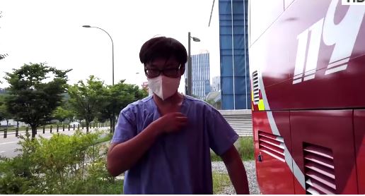 เจ้าหน้าที่แพทย์ประจำศูนย์ตรวจหาเชื้อโควิด-19 ในเมืองนัมยังจู นอกกรุงโซล ที่เหนื่อยจากการทำงานหนักมาตั้งแต่ช่วงเช้าจนถึงบ่าย ท่ามกลางสภาพอากาศร้อนอบอ้าวในเตนท์ที่เป็นศูนย์ตรวจ ได้ผ่อนคลายร่างกายอย่างง่ายๆ ด้วยการเดินไปขึ้นรถบัสปรับอากาศที่จอดอยู่ไม่ไกลจากศูนย์ตรวจ ภายในเปิดแอร์เย็นเฉียบ มีอาหารกึ่งสำเร็จรูปอย่างบะหมี่และผักดอง น้ำดื่ม ขนมขบเคี้ยวให้คอยบริการ ช่วยให้ผ่อนคลายจากการทำงานมาตลอดทั้งวัน เจ้าหน้าที่คนหนึ่งบอกว่า การได้นั่งเอนหลังตากแอร์เย็นๆ เพียงไม่นานก็ช่วยคืนความสดชื่นให้ร่างกายได้มาก