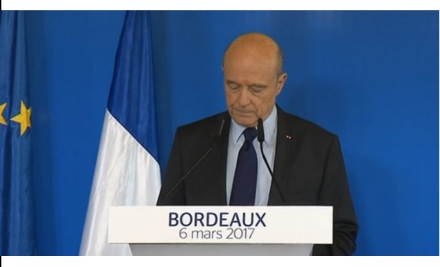 บอร์กโดซ์ 6 มี.ค. – นายอแลง จุปเป อดีตนายกรัฐมนตรีฝรั่งเศสประกาศวันนี้ขอถอนตัวจากการแข่งขันกับนายฟรองซัวส์ ฟียง อดีตนายกรัฐมนตรีฝรั่งเศสเช่นกัน เพื่อเป็นตัวแทนพรรคเลส์ เรปูบลิแกงส์ ลงสมัครชิงตำแหน่งประธานาธิบดีฝรั่งเศส