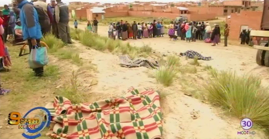 โบลิเวีย 26 ก.พ. – หลังเกิดเหตุสลดหญิงชาวโบลิเวีย พร้อมลูก 2 คน ถูกรถเทรลเลอร์ที่หักหลบรถมินิบัสพุ่งข้ามเลน ชนเสียชีวิตขณะเดินอยู่ริมถนน ผู้นำชุมชนในโบลิเวีย ออกมาเรียกร้องให้รัฐบาลสร้างทางเท้าให้กับประชาชน เพราะถนนที่เกิดเหตุเป็นถนนเชื่อมระหว่างกรุงลาปาซกับเมืองโอรูโร ซึ่งขณะนี้กำลังมีงานคาร์นิวาล ทำให้มีผู้ใช้รถใช้ถนนจำนวนมาก ทั้งนี้จากสถิติของโบลิเวีย มีผู้เสียชีวิตจากอุบัติเหตุบนถนนเพิ่มขึ้นถึง 105 เปอร์เซ็นต์ เมื่อเทียบกับ ปี 2558.- สำนักข่าวไทย