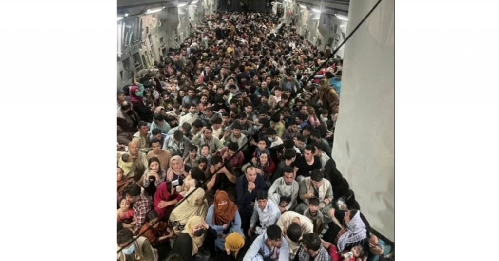ขณะเดียวกัน สื่อต่างชาติหลายสำนักเผยภาพแรกที่สร้างความตกตะลึง ชาวอัฟกันลี้ภัยหลายร้อยคนที่อยู่ในอาการตื่นตระหนก นั่งกันอย่างเบียดเสียดแน่นเต็มเครื่องบินลำเลียงของกองทัพสหรัฐ ขณะเดินทางออกจากประเทศบ้านเกิดเมืองนอนของพวกเขา หลังกองกำลังตาลีบันบุกยึดกรุงคาบูลได้สำเร็จในเวลารวดเร็วเมื่อวันอาทิตย์