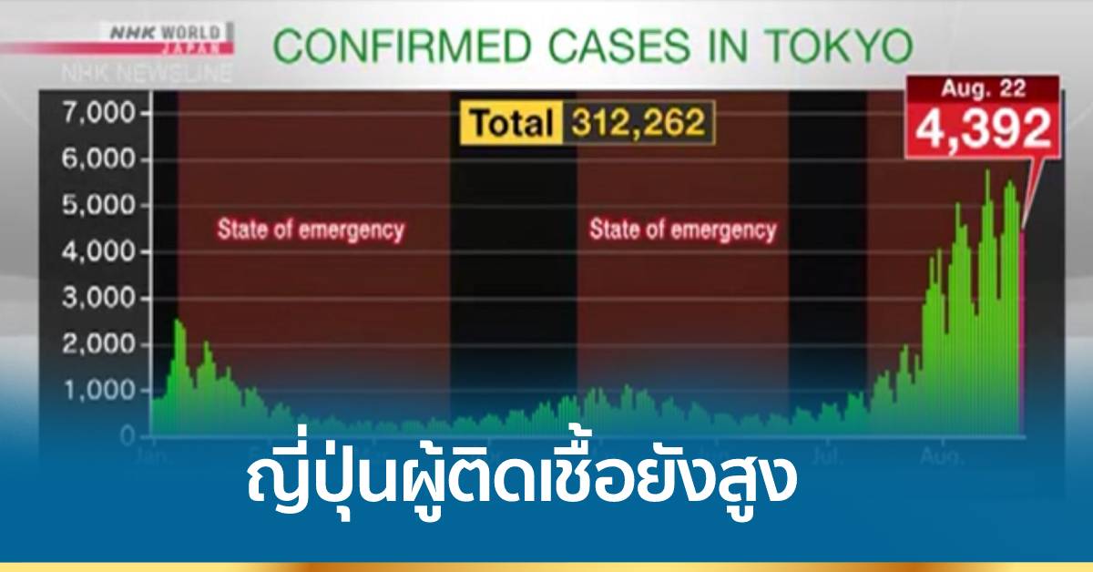 สุดสัปดาห์ที่ผ่านมา เป็นสัปดาห์แรกที่ญี่ปุ่นขยายภาวะฉุกเฉินเพื่อต่อสู้กับการแพร่ระบาดของโควิด-19 แต่ไม่มีสัญญาณว่าอัตราการติดเชื้อจะลดลง วันอาทิตย์ที่ผ่านมา กรุงโตเกียวรายงานยอดผู้ติดเชื้อรายใหม่ถึง 4,392 คน ลดลงจากวันเสาร์ 700 คน คิดเป็นอัตราเฉลี่ยเพิ่มขึ้นร้อยละ 11 ในรอบ 7 วัน เจ้าหน้าที่ระบุว่าวานนี้มีผู้เสียชีวิต 8 คนในกรุงโตเกียว และมียังมีผู้ป่วยอาการรุนแรง 271 คน ขณะที่การแข่งขันโตเกียวพาราลิมปิก ซึ่งจะเริ่มขึ้นในวันอังคารนี้ พบผู้เข้าชมการแข่งขันอีก 30 คน มีผลตรวจเป็นบวก ในจำนวนนี้เป็นนักกีฬาจากต่างประเทศ 2 คน.-สำนักข่าวไทย