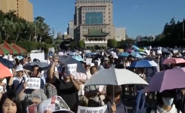 ไทเป 17 พ.ย.- คนหลายพันคนชุมนุมในกรุงไทเปของไต้หวันในวันนี้คัดค้านร่างกฎหมายอนุญาตการแต่งงานของคนเพศเดียวกัน ซึ่งจะทำให้ไต้หวันเป็นแห่งแรกของเอเชียที่มีกฎหมายนี้