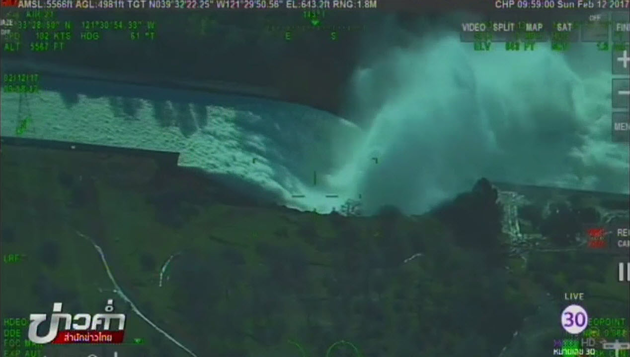 ล่าสุด กรมทรัพยากรน้ำต้องพยายามเร่งระบายน้ำออกจากทางระบายน้ำฉุกเฉิน หรือ spillway ของตัวเขื่อนด้วยความเร็ว 100,000 ลูกบาศก์ฟุต/วินาที เพราะกลัวว่าน้ำจะล้นทะลักท่วมบ้านเรือนผู้คน แต่สถานการณ์ยิ่งเลวร้ายหนักขึ้นเมื่อคอนกรีตผิวหน้าทางระบายน้ำล้นฉุกเฉินถูกกัดเซาะเสียหาย จนอาจทำให้ปริมาณน้ำจำนวนมหาศาลไหลทะลักจนไม่สามารถควบคุมได้.-สำนักข่าวไทย