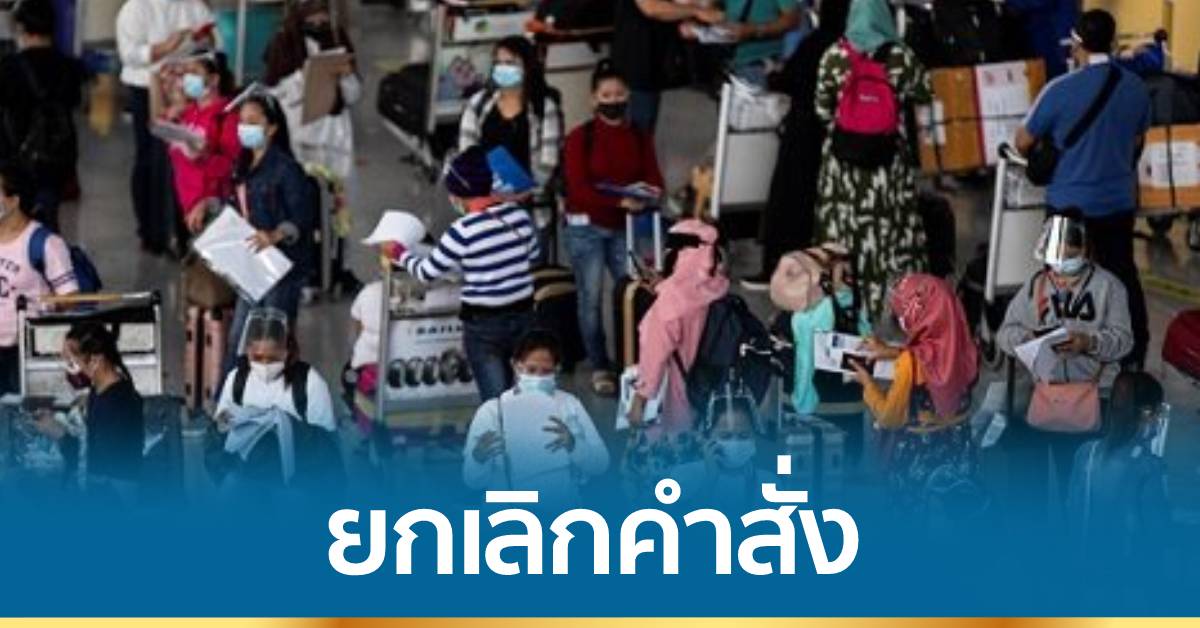 โฆษกประจำทำเนียบประธานาธิบดีฟิลิปปินส์ กล่าวว่า คำสั่งห้ามดังกล่าวเริ่มบังคับใช้ในเดือนเมษายนและขยายเพิ่มจำนวนประเทศมากขึ้นในเดือนกรกฎาคมเพื่อป้องกันการระบาดเชื้อไวรัสโคโรนา 2019 กลายพันธุ์สายพันธุ๋เดลตา เขากล่าวว่า คำสั่งนี้จะยกเลิกในวันจันทร์นี้ โดยผู้ที่เดินทางมาจากอินเดีย ปากีสถาน ศรีลังกา เนปาล สหรัฐอาหรับเอมิเรตส์ โอมาน มาเลเซีย อินโดนีเซียและประเทศไทย จะสามารถเดินทางเข้ามายังฟิลิปปินส์ได้ แต่ต้องกักตัวเพื่อสังเกตุอาการเป็นเวลา 14 วัน นับตั้งแต่วันทีร่เดินทางมาถึงฟิลิปปินส์.-สำนักข่าวไทย
