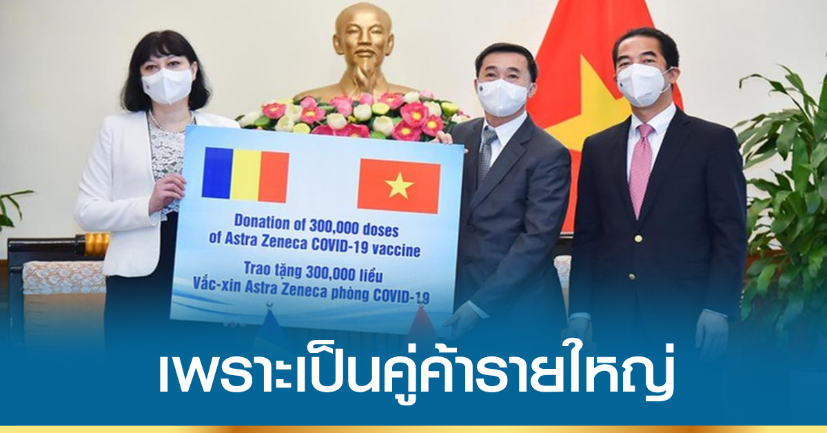 ฮานอย 5 ก.ย.- สื่อเวียดนามระบุว่า สหภาพยุโรป หรืออียู (EU) บริจาควัคซีนป้องกันโรคติดเชื้อไวรัสโคโรนา 2019 หรือโควิด-19 จำนวนมากให้แก่เวียดนาม เพราะเป็นคู่ค้าใหญ่ที่สุดของอียูในภูมิภาคเอเชียตะวันออกเฉียงใต้ และต้องการมีอิทธิพลทางภูมิรัฐศาสตร์ในภูมิภาคอินโด-แปซิฟิก