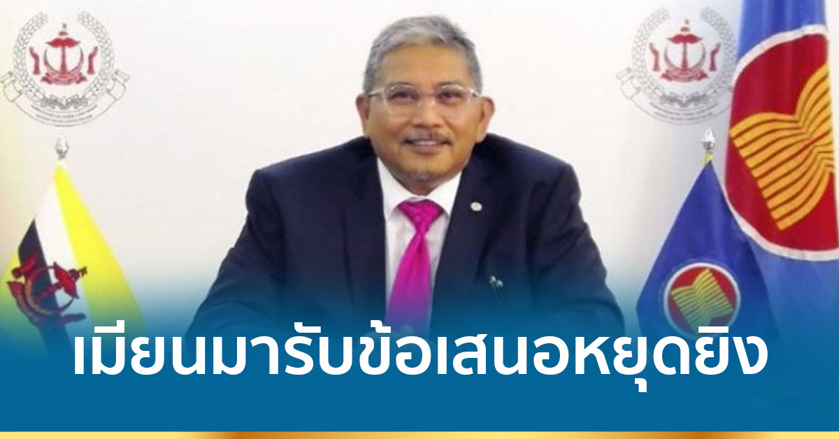 สิงคโปร์ 5 ก.ย.- นายเออร์วาน ยูซอฟ ทูตพิเศษสมาคมประชาชาติเอเชียตะวันออกเฉียงใต้ (อาเซียน) เรื่องเมียนมาเผยว่า รัฐบาลเมียนมาตอบรับข้อเสนอให้ทุกฝ่ายหยุดยิงเป็นเวลา 4 เดือน เพื่อเปิดทางให้แก่การจัดส่งความช่วยเหลือด้านมนุษยธรรม