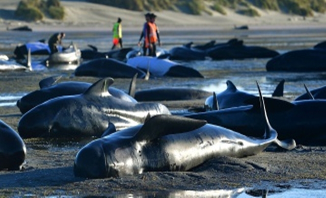 สำนักงานการอนุรักษ์นิวซีแลนด์ปิดชายหาดในย่านโกลเดนเบย์บนเกาะใต้ที่มีวาฬเกยตื้นหมู่เมื่อสัปดาห์ก่อนเพราะเกรงซากระเบิด หลังจากมีวาฬเกยตื้นรวมกว่า 600 ตัว และสามารถช่วยนำกลับทะเลไปได้ราว 400 ตัว เจ้าหน้าที่สวมชุดป้องกันเร่งตัดเปิดช่องซากที่กำลังบวมอืดเพื่อลดแรงดันภายในซาก คาดว่าต้องใช้เวลาหลายเดือนกว่าจะกำจัดซากวาฬได้เรียบร้อย และเห็นวาฬฝูงสุดท้ายว่ายห่างจากฝั่งประมาณ 6 กิโลเมตรเมื่อเย็นวันอาทิตย์ จนถึงขณะนี้ยังไม่ทราบสาเหตุที่วาฬเกยตื้นหมู่