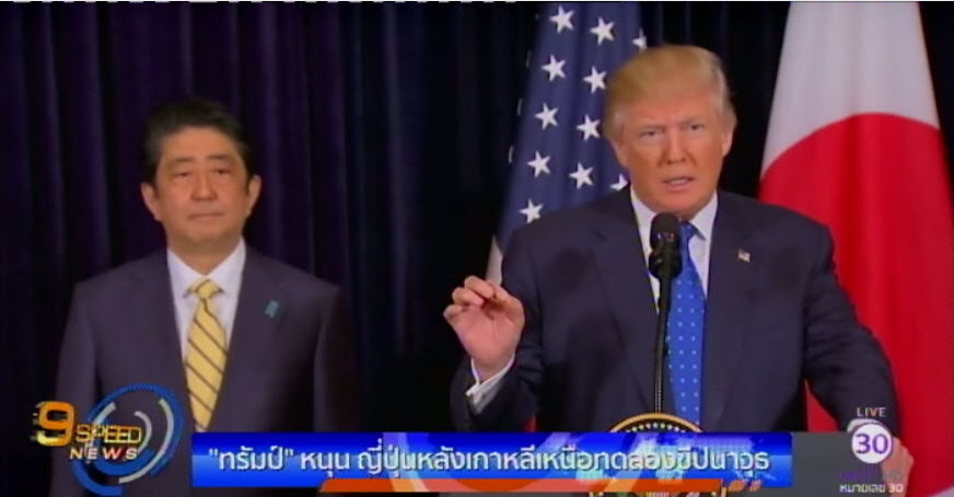 ทรัมป์ หนุน ญี่ปุ่นหลังเกาหลีเหนือทดลองขีปนาวุธ