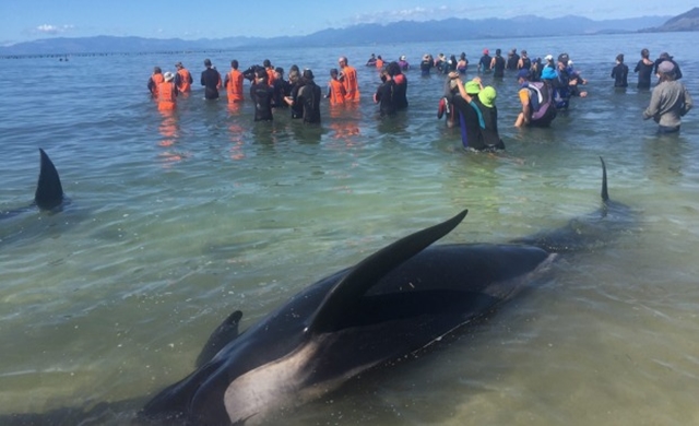 แหลมแฟร์เวลล์ ย่านโกลเดนเบย์ ทางตะวันตกเฉียงเหนือสุดของเกาะใต้ อยู่ห่างจากเมืองเนลสัน ซึ่งเป็นแหล่งท่องเที่ยวยอดนิยมของนิวซีแลนด์ไปทางตะวันตก 150 กิโลเมตร เกิดเหตุวาฬเกยตื้นจำนวนมากอย่างน้อย 9 ครั้งตลอดทศวรรษที่ผ่านมา เหตุการณ์ล่าสุดเกิดขึ้นเมื่อเช้าวานนี้ วาฬนำร่องเกยตื้นทั้งหมด 416 ตัว ในจำนวนนี้เกือบ 300 ตัวตายก่อนที่อาสาสมัครจะไปถึง วาฬนำร่องเป็นวาฬที่พบมากที่สุดในนิวซีแลนด์ เมื่อโตเต็มที่จะมีความยาวถึง 6 เมตร.-สำนักข่าวไทย