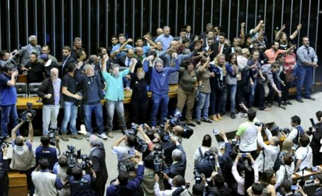 ผู้ประท้วงยึดแท่นเวทีพร้อมตะโกนเรียกให้นายทหารมาที่สภา อันเป็นหมายถึงการสนับสนุนให้รัฐประหาร เหตุการณ์ทั้งหมดเกิดขึ้นถูกเผยแพร่ทางโทรทัศน์แห่งชาติ ขณะที่ ส.ส.พากันออกไปเพื่อความปลอดภัย ผู้ประท้วงทั้งหมดถูกตำรวจควบคุมตัวไปสอบปากคำ ส.ส.คนหนึ่งกล่าวว่า เป็นเรื่องน่ากังวลอย่างยิ่ง เพราะเป็นสัญญาณเตือนว่าบราซิลกำลังจะกลับไปสู่ยุคสุดโต่งอีกครั้ง บราซิลเคยถูกปกครองด้วยรัฐบาลทหารระหว่างปี 2507-2528 ขณะที่ชาวบราซิลจำนวนหนึ่งสนับสนุนให้ทหารยึดอำนาจเพราะเบื่อหน่ายกับการทุจริตที่เกิดขึ้นอย่างแพร่หลายและภาวะเศรษฐกิจตกต่ำ