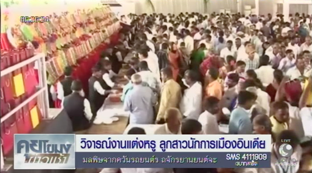 ภายหลังจากนายกาลี จันตระ เรดดี นักการเมืองสังกัดพรรคภารติยะ จันตระ จัดพิธีแต่งงานอย่างหรูหราฟุ่มเฟือยให้แก่ลูกสาวกับเจ้าบ่าวนักธุรกิจ วัย 23 ปี ด้วยงบประมาณมากถึง 5,000 ล้านรูปี หรือกว่า 2,600 ล้านบาท ที่รัฐกรณาฏกะ ทางภาคใต้ ก่อให้เกิดกระแสวิพากษ์วิจารณ์จากชาวบ้านอย่างกว้างขวาง ทั้งๆ ที่ชาวอินเดียทั่วประเทศอยู่ระหว่างเผชิญปัญหาต้องเข้าแถวต่อคิวกันแลกธนบัตรด้วยวงเงินจำกัดรายละเพียง 4,000 รูปี หลังรัฐบาลประกาศยกเลิกใช้ธนบัตรฉบับ 500 กับ 1,000 รูปี เพราะหวังปราบปรามการซุกซ่อนเงินทุจริตคอร์รัปชั่น แต่นายเรดดี กลับใช้เงินมหาศาลจัดงานแต่งให้ลูกสาว เชิญแขก และคนดังมาร่วมงานมากกว่า 50,000 คน เฉพาะชุดเสื้อผ้าของเจ้าสาว คือ พราหมณี ราคาแพงระยับถึง 170 ล้านรูปี หรือราว 90 ล้านบาท ไม่นับรวมอัญมณีที่เธอสวมใส่มูลค่ามากถึง 900 รูปี หรือเกือบ 500 ล้านบาท ทั้งยังว่าจ้างนักเต้นระบำแซมบ้าจากบราซิลมาร่วมแสดงในงาน ทำให้ถูกชาวบ้านวิพากษ์วิจารณ์ว่าอวดรวยและเอาเงินมาจากไหนมากมาย ขณะที่นายเรดดี้ เพิ่งได้รับการประกันตัวเมื่อปีที่แล้ว หลังติดคุกอยู่นานถึง 3 ปี จากคดีทำเหมืองแร่ผิดกฎหมาย. -สำนักข่าวไทย
