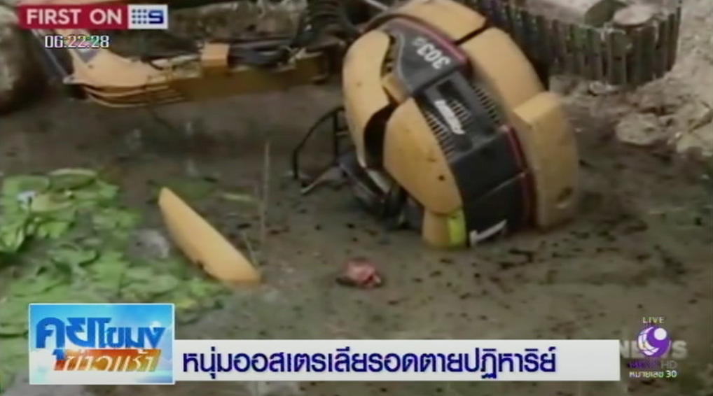 ออสเตรเลีย 10 ก.พ.- หนุ่มใหญ่ชาวออสเตรเลียรอดตายหวุดหวิด หลังขับรถขุดดินพลิกคว่ำตกบึงน้ำและถูกรถทับติดค้าง ทำให้โผล่เหนือผิวน้ำได้เพียงระดับจมูกหายใจอยู่นานหลายชั่วโมง ก่อนได้รับการช่วยเหลือปลอดภัย