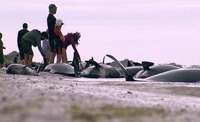 โฆษกกระทรวงอนุรักษ์ธรรมชาติของนิวซีแลนด์กล่าวว่า แม้การมาเกยหาดของวาฬในนิวซีแลนด์จะเกิดขึ้นบ่อยครั้งแต่กรณีที่เกิดขึ้นล่าสุดนี้ถือเป็นการว่ายมาเกยหาดเป็นจำนวนมากที่สุดเป็นประวัติการณ์ครั้งหนึ่งก็ว่าได้ โฆษกกล่าวว่า วาฬไพลอต หรือ วาฬนำร่อง จำนวน 416 ตัว ได้ว่ายมาเกยตื้นที่ชายหาดที่บริเวณแฟร์เวลล์ สปิต ในเขตโกลเดน เบย์ ที่อยู่ทางตอนเหนือสุดของเกาะใต้ ของนิวซีแลนด์ และในจำนวนนี้ ราวร้อยละ 70 ตายไปแล้วและขณะนี้ เจ้าหน้าที่และอาสาสมัครกำลังเร่งช่วยเหลือนำวาฬที่เหลือออกไปจากชายหาดแต่แนวโน้มไม่ค่อยสดใส สำหรับสาเหตุที่ทำให้วาฬว่ายมาเกยตื้นนั้น ยังไม่ทราบแน่ชัดแต่เชื่อว่า ส่วนหนึ่งมาจากสภาพภูมิศาสตร์ในท้องถิ่น.-สำนักข่าวไทย