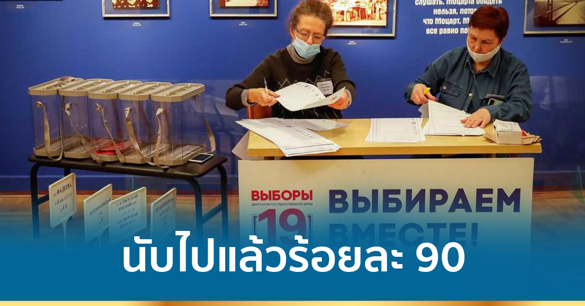 มอสโก 20 ก.ย.- ผลการเลือกตั้งทั่วประเทศรัสเซียที่นับไปแล้วร้อยละ 90 คาดว่า พรรครัฐบาลรัสเซียจะครองเสียง 2 ใน 3 ในสภาผู้แทนราษฎรหรือสภาดูมาต่อไป