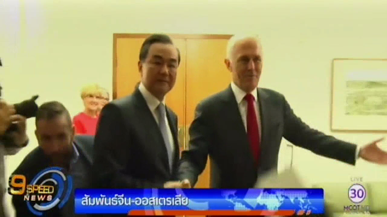 จีน 8 ก.พ.-นายหวัง อี้ รัฐมนตรีต่างประเทศจีน พบปะกับนายกรัฐมนตรีมัลคอล์ม เทิร์นบุล ของออสเตรเลีย ที่กรุงแคนเบอร์รา ย้ำถึงความร่วมมือกัน เพื่อต่อต้านการกีดกันทางการค้าและส่งเสริมการค้าระหว่างกัน ซึ่งทั้งสองประเทศจะร่วมกันคุ้มครองกลไกการค้าระหว่างประเทศ พร้อมยกระดับการเจรจาและความร่วมมือทวิภาคี.-สำนักข่าวไทย