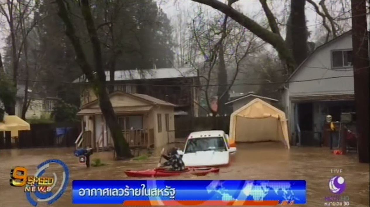 สหรัฐ 8 ก.พ.-หลายพื้นที่ของสหรัฐกำลังเผชิญสภาพอากาศที่เลวร้าย รัฐแคลิฟอร์เนียพายุฝนกระหน่ำ ทำให้เกิดน้ำท่วมและดินโคลนถล่ม ขณะที่รัฐลุยเซียนา ทอร์นาโดอย่างน้อย 3 ลูกพัดถล่ม