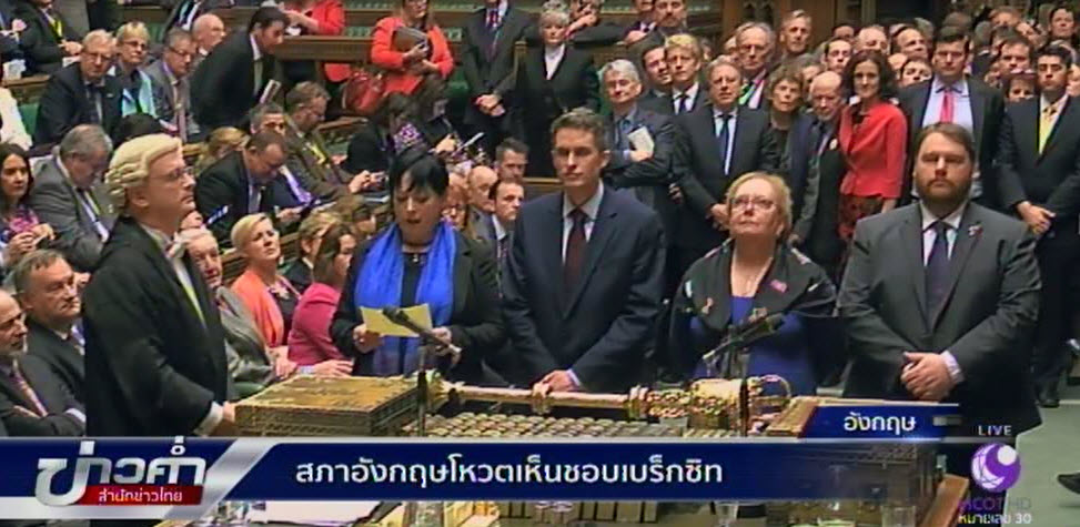 อังกฤษ 2 ก.พ.- กระบวนการ เบร็กซิท อังกฤษถอนตัว ออกจากการเป็นสมาชิก กลุ่มสหภาพยุโรปหรืออียู คืบหน้าไปอีก 1 ระดับ เมื่อสภาผู้แทนราษฏรอังกฤษ ลงมติเห็นชอบให้เริ่มต้น เดินหน้านับ 1 กระบวนการเบร็กซิทได้ ตามผลการลงประชามติ ของชาวอังกฤษ เมื่อปีที่แล้ว